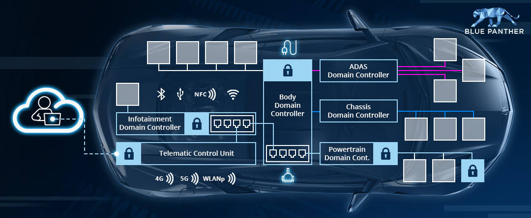 The design of the vehicle architecture in accordance with Defense in Depth & Security by Design principles forms a fortress and thus optimal protection against hacker attacks.